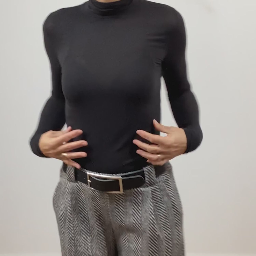 CAMISETA CUELLO ALTO EN CASHMERE NEGRA