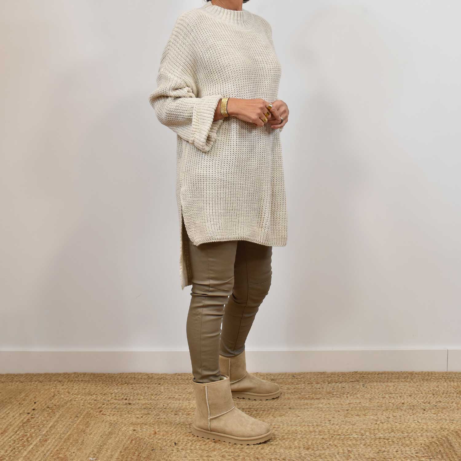 BEIGE TURTLENECK OPENSIDE SWEATER