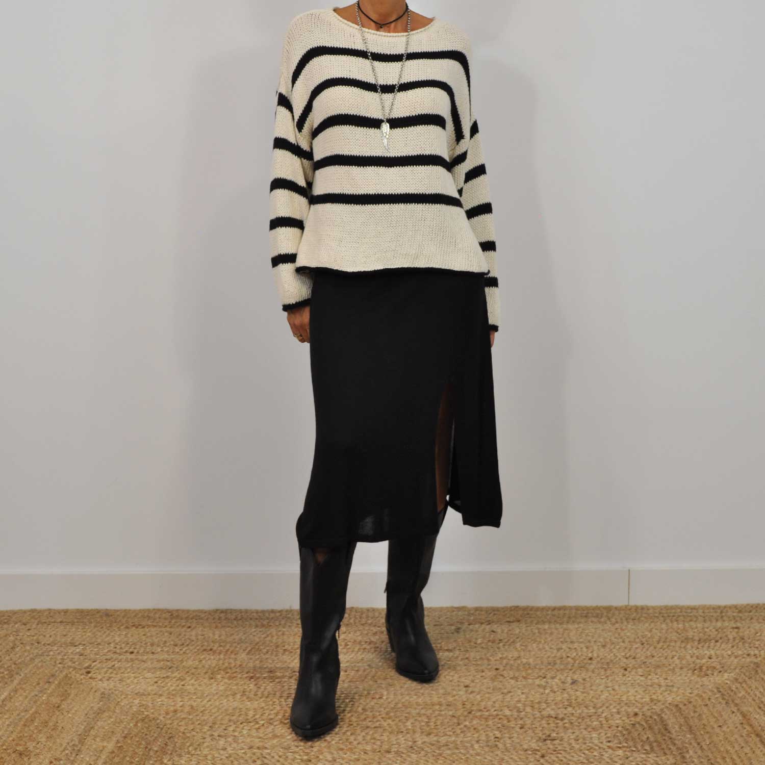 BLACK RIBBED SWEATER