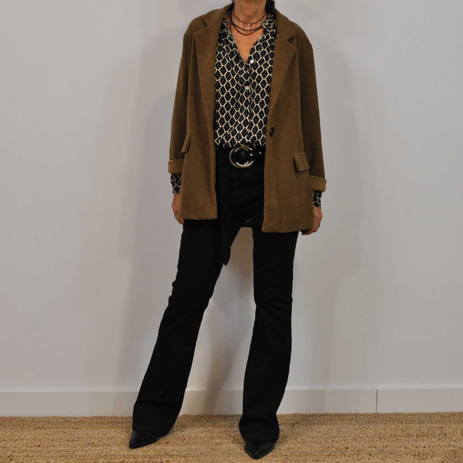 BROWN HERRINGBONE STRAIGH TROUSERS