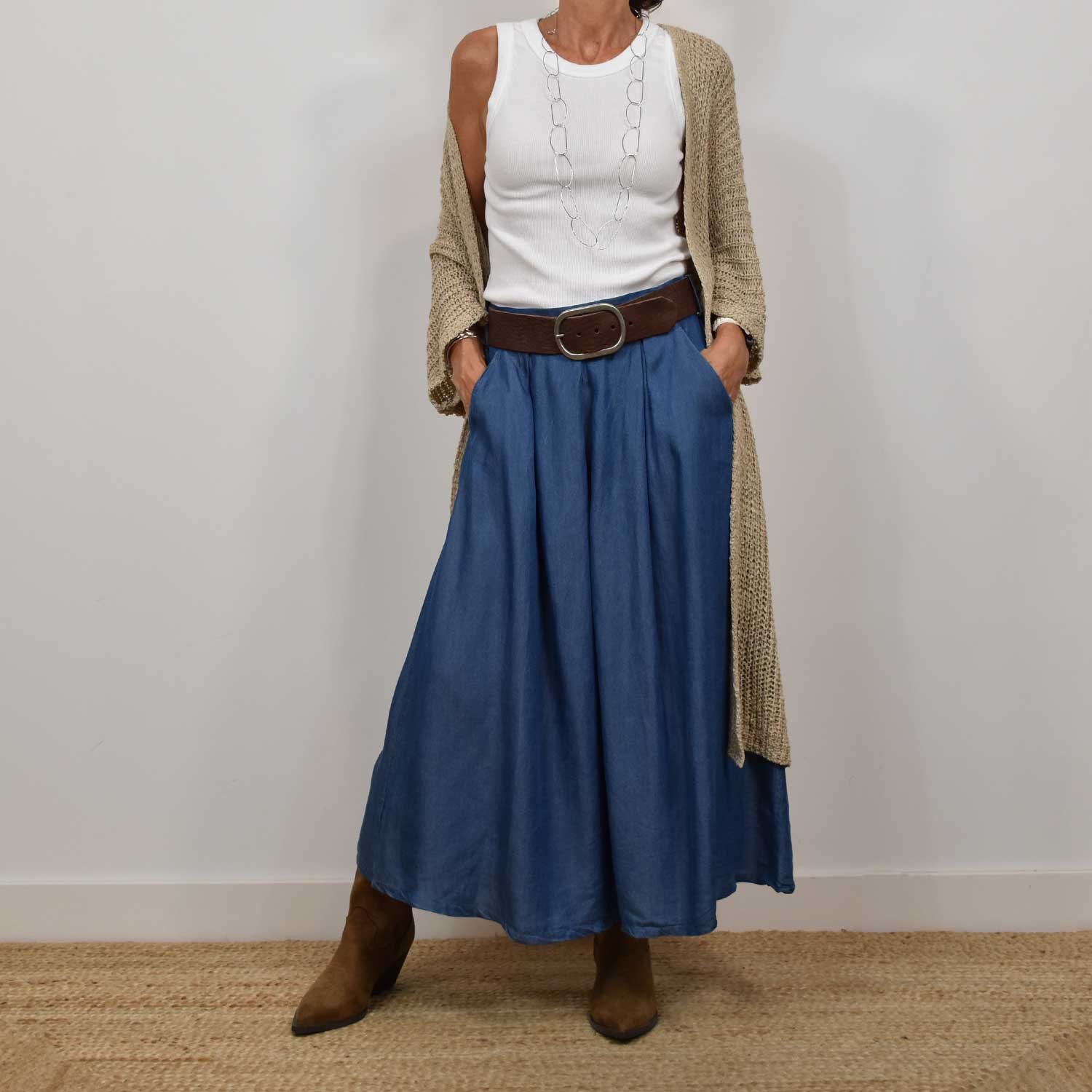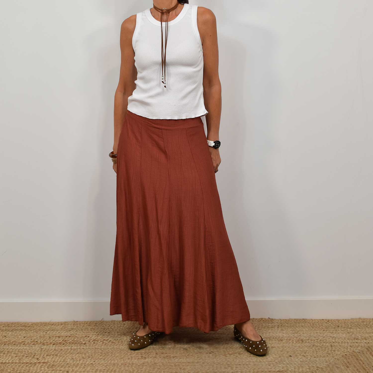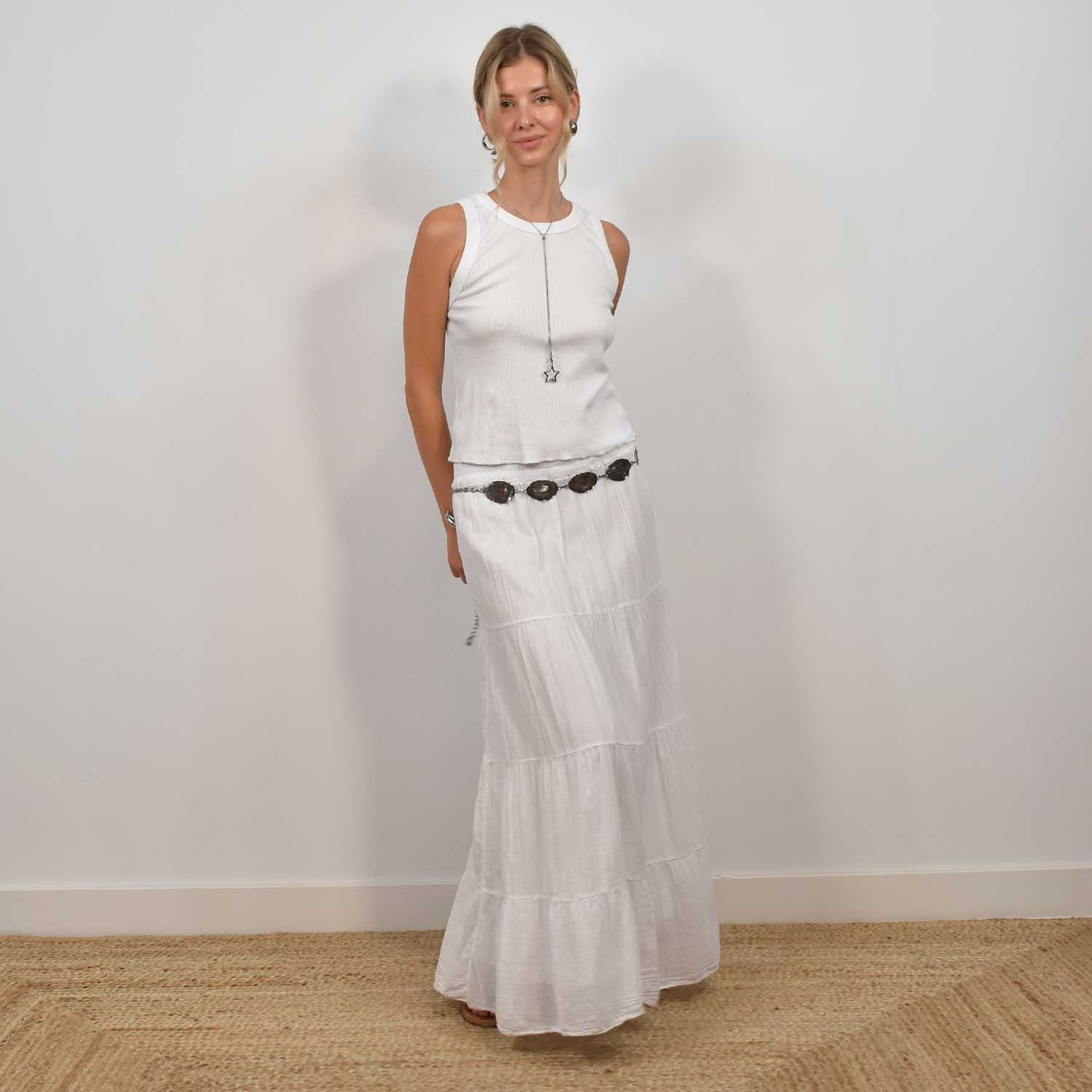 Camiseta de tirantes anchos. Escote redondo. Tejido tipo canalé y efecto desgastado.  Adaptable de la talla 34 a la 40. Composición: 95% viscosa y 5% elastano.