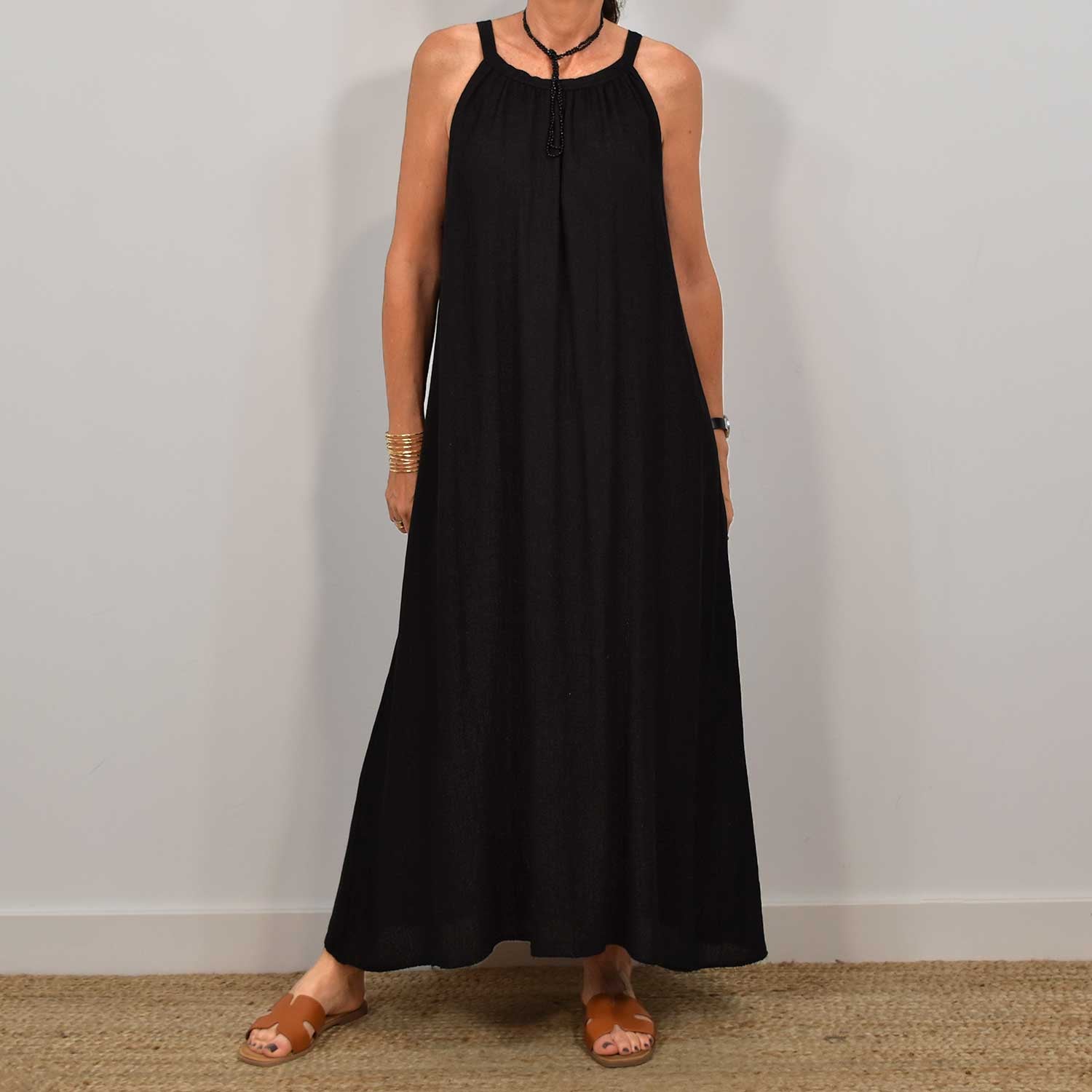 Robe noir à manches courtes