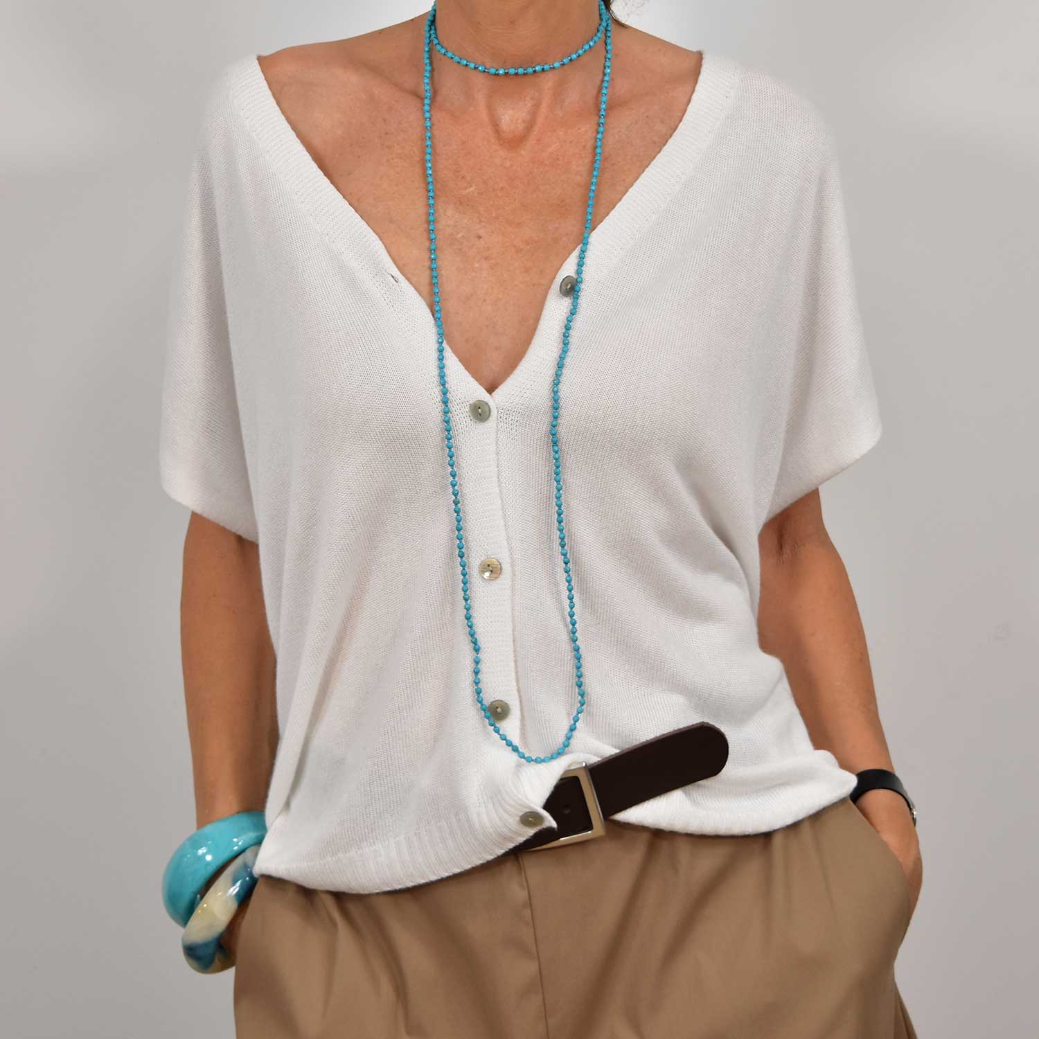 CHEMISE COL V EN DENTELLE BLANC