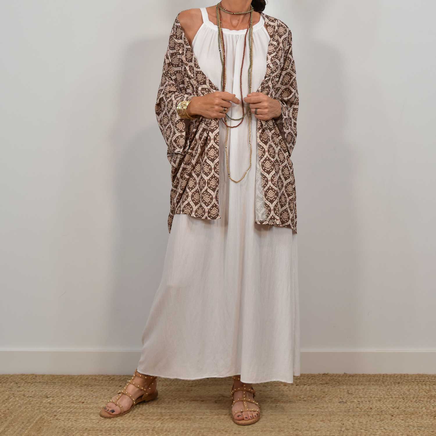 VESTE LAMB FRANGES BRUN