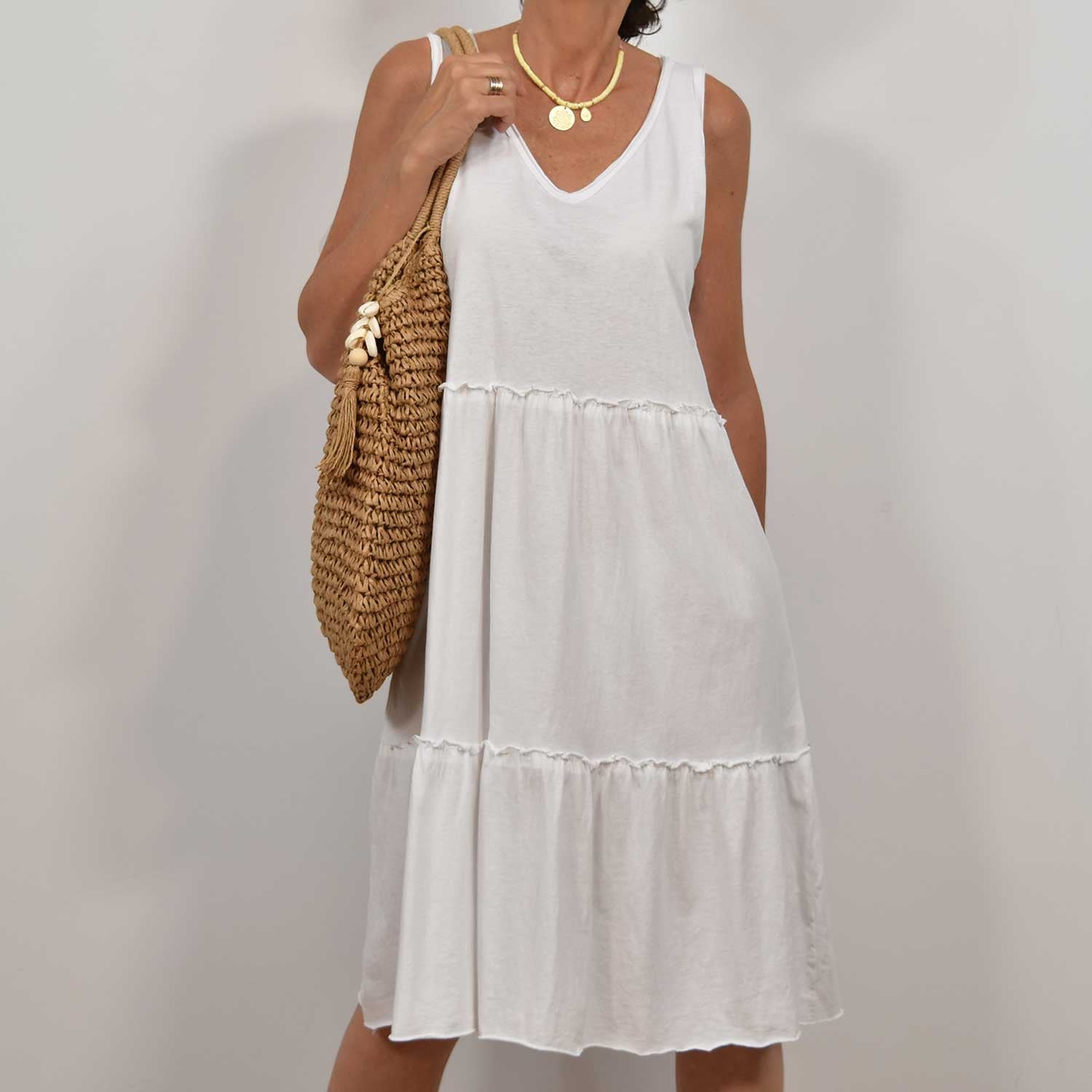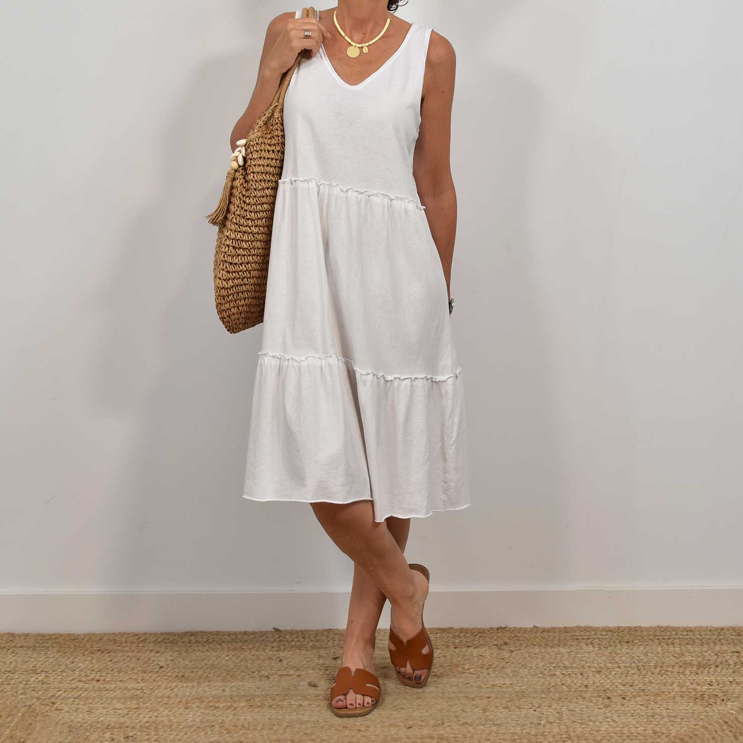 T-SHIRT BLANC FLUIDE À RAYURES