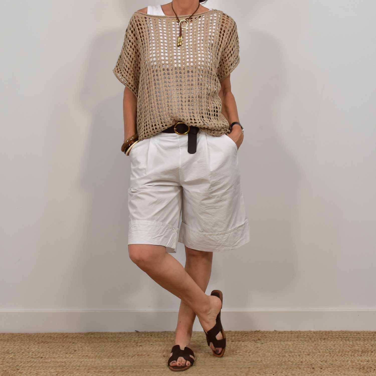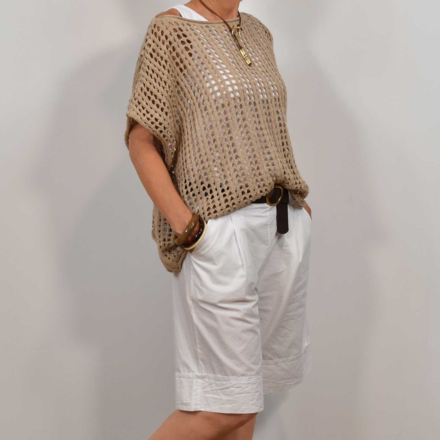 T-SHIRT EN TULLE À POIS BEIGE
