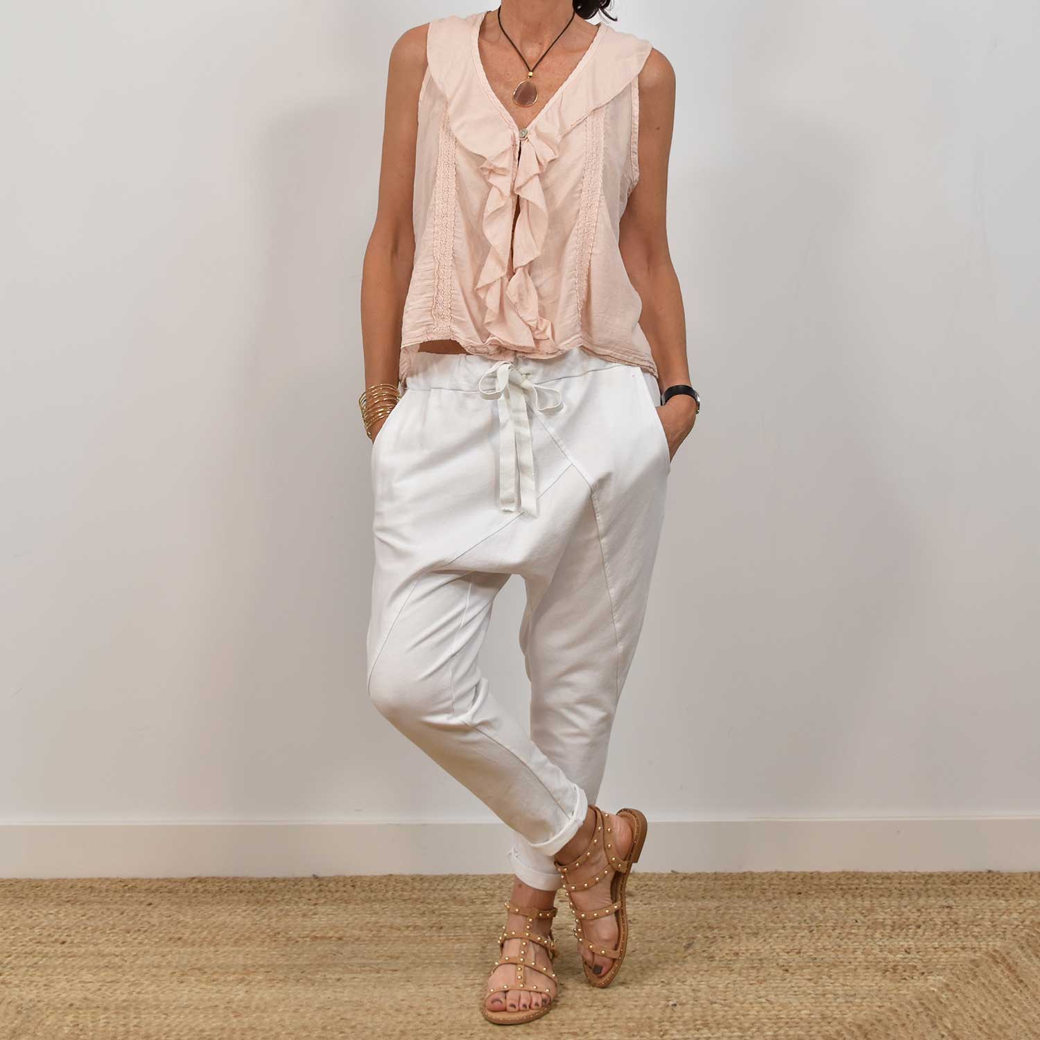 PANTALÓN BAGGY COSTURA BLANCO